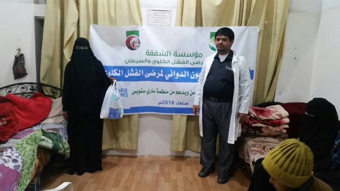 وزعت مؤسسة الشفقه اليوم مجموعة من الادويه لمرضى الفشل الكلوي في السكن التابع لمؤسسه الشفقه لعدد عشرين مريض ومريضة بواقع خمسة وثلاثين الف ريال للمريض الواحد وكمرحلة اول ,تم التوزيع بتعاون مع منظمة همنا اليمن وبدعم من منظمة ماري ستبس, يذكر ان توزيع الادويه لمرضى الفشل الكلوي بمؤسسة الشفقه سيتم كل ثلاثة اشهر .